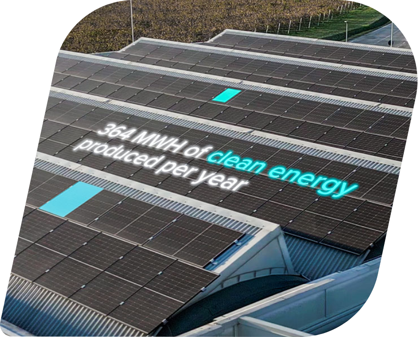 Annualmente raggiungiamo in media il 25% di autosufficienza energetica grazie ai pannelli solari, che generano oltre 360 MWh di energia pulita all’anno. Inoltre, il nostro sistema di riciclo degli scarti consente di recuperare fino a 1.500 tonnellate di materiale plastico.