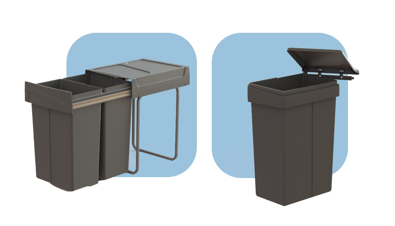 Disponibili con estrazione frontale, questi contenitori consentono un utilizzo pratico e immediato, adattandosi perfettamente a mobili di cucina di diverse dimensioni.
