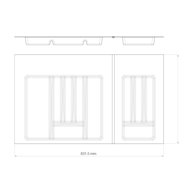 La giunzione permette di comporre portaposate per cassetti fino a mm 700 – 800 – 900 – 1000 – 1200.